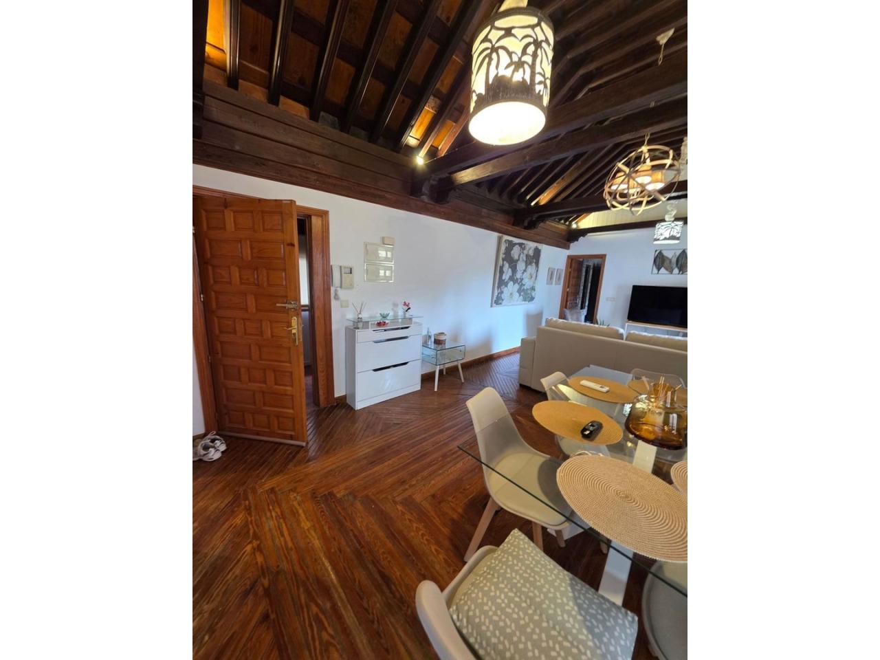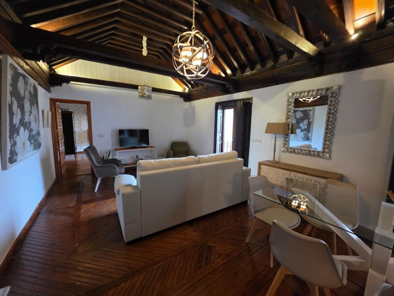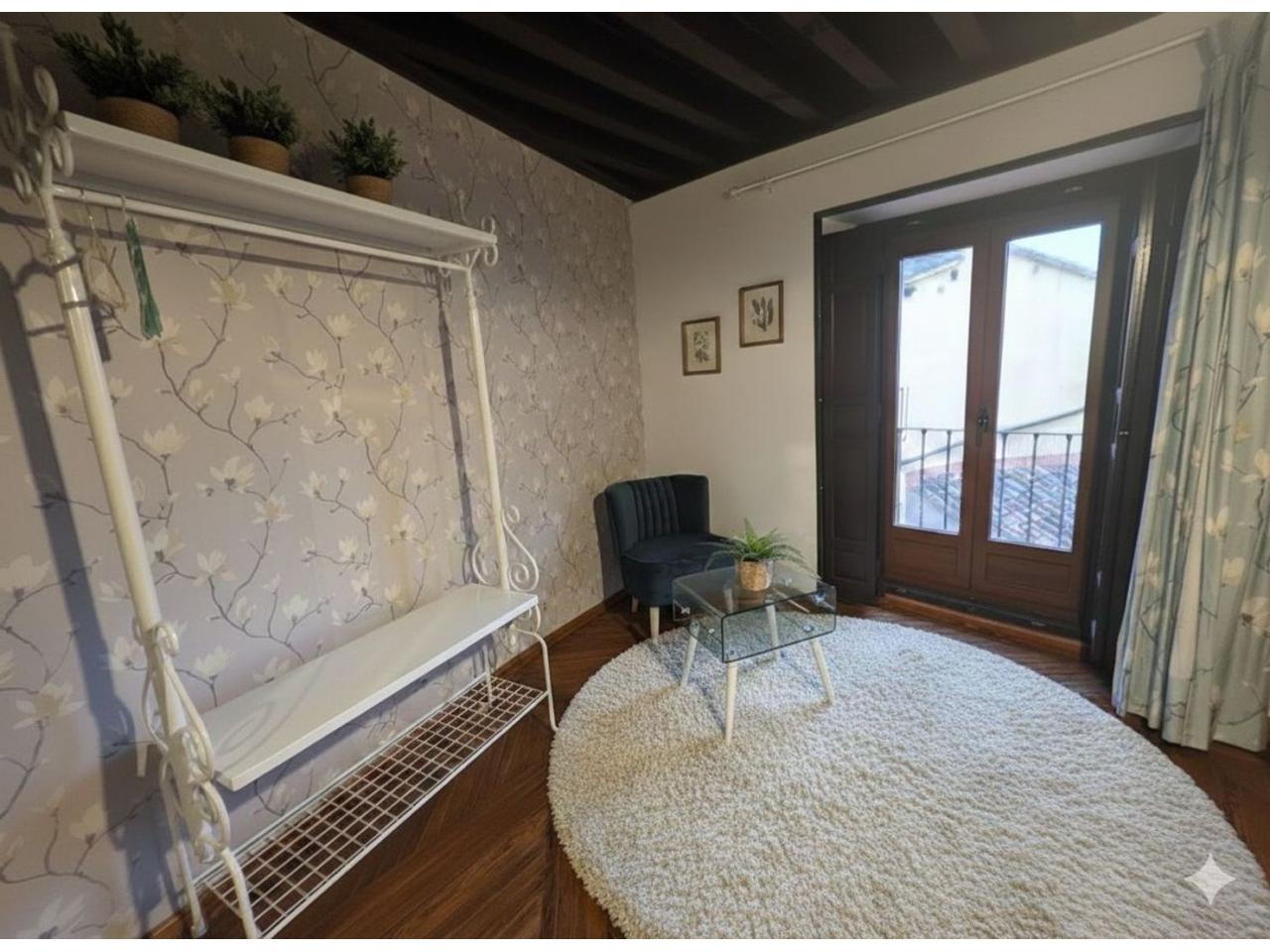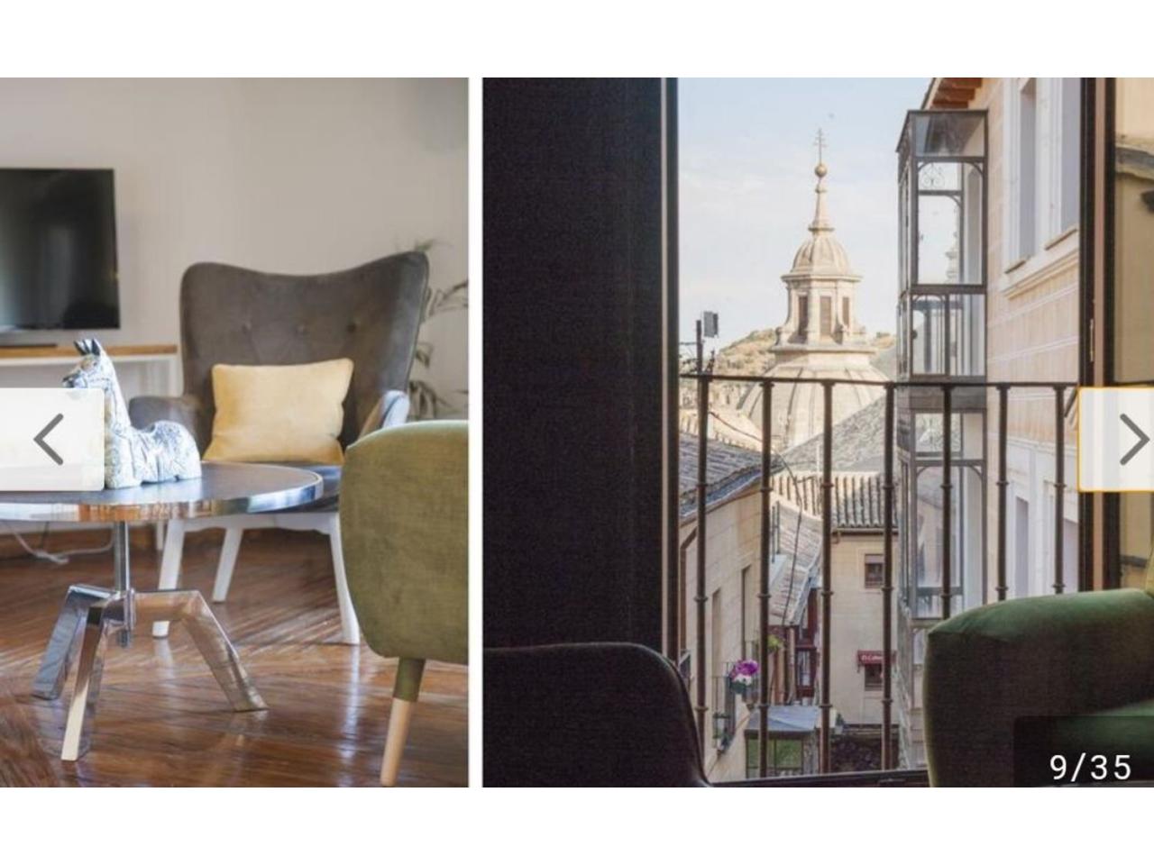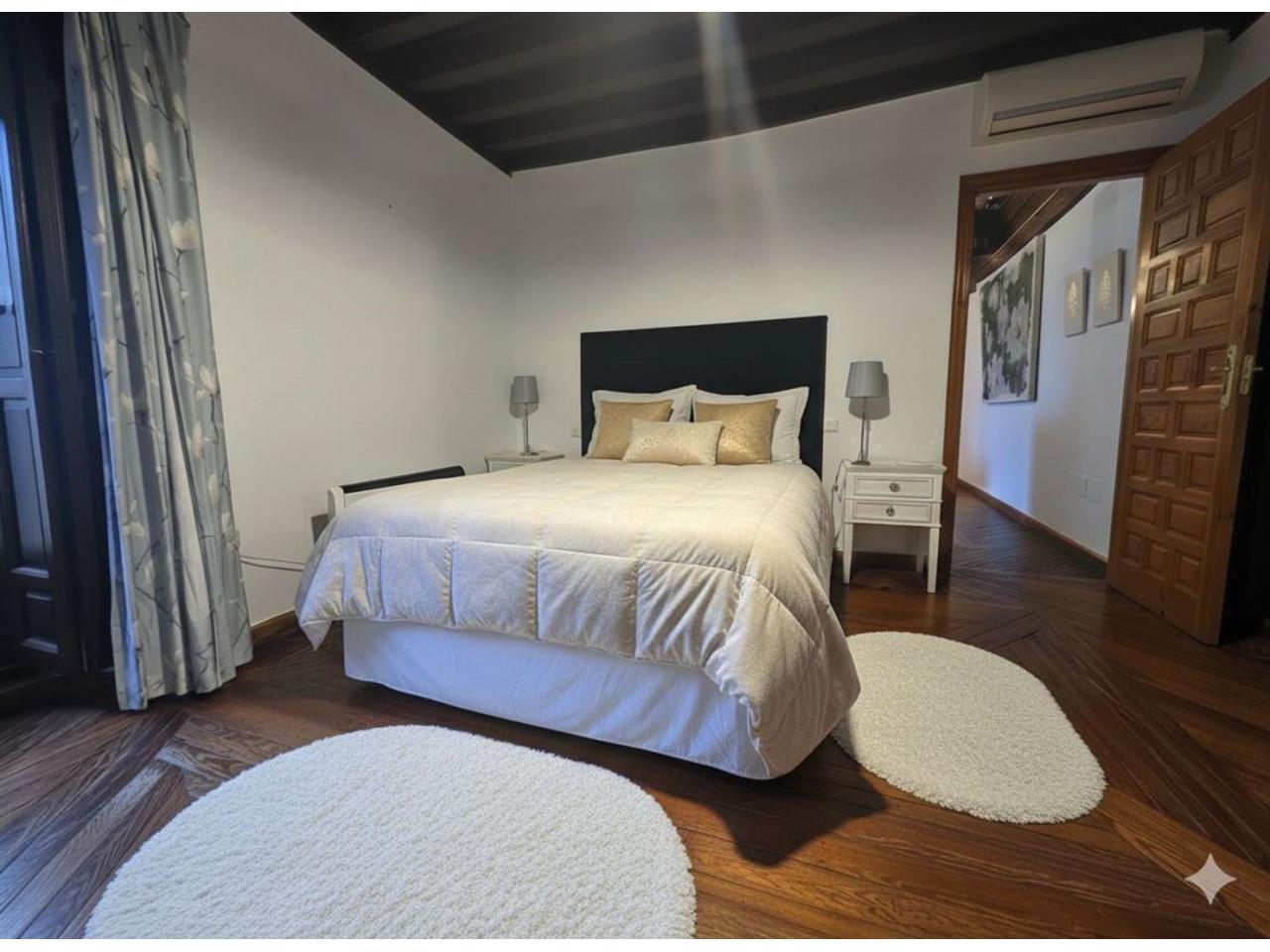 El diseño interior destaca por sus suelos de tarima rústica y vigas de madera vistas en los techos, creando un ambiente acogedor y cálido. Disfruta de las impresionantes vistas de Toledo desde los balcones del ático, donde podrás relajarte y contemplar la belleza de la ciudad.